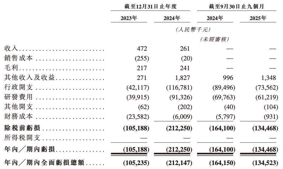 在过去的2023年、2024年和2025年前九个月泽峰资本,华芢生物的收入分别为47.2万元、26.1万元和0元;相应期间的研发开支分别为3991.5万元、9132.6万元和6121.9万元;相应期间的净亏损分别为1.05亿元、2.12亿元和1.35亿元。