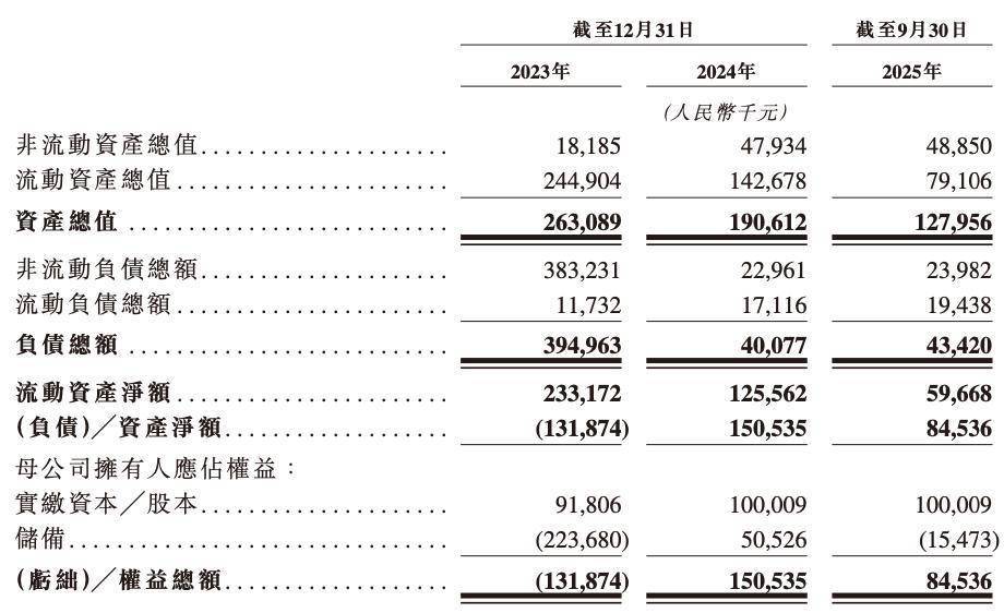 公司流动资产净额由截至2023年12月31日的2.33亿元减少至截至2024年12月31日的1.26亿元,主要是由于购买定期存款导致现金及现金等价物减少,以及经营活动所用现金增加。截至2025年9月30日,公司流动资产净额为5970万元。